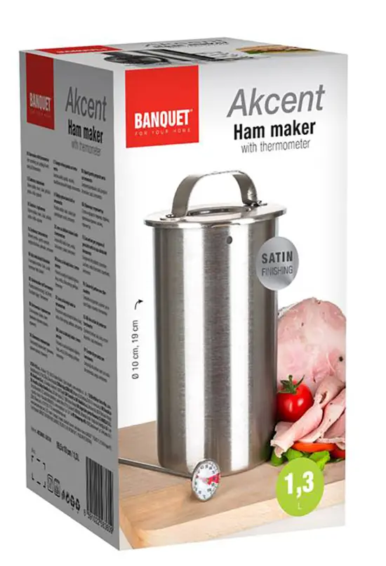 Součástí výrobku je také teploměr, který Vám umožní hlídat aktuální teplotu v šunkovaru v průběhu celého procesu vaření šunky.