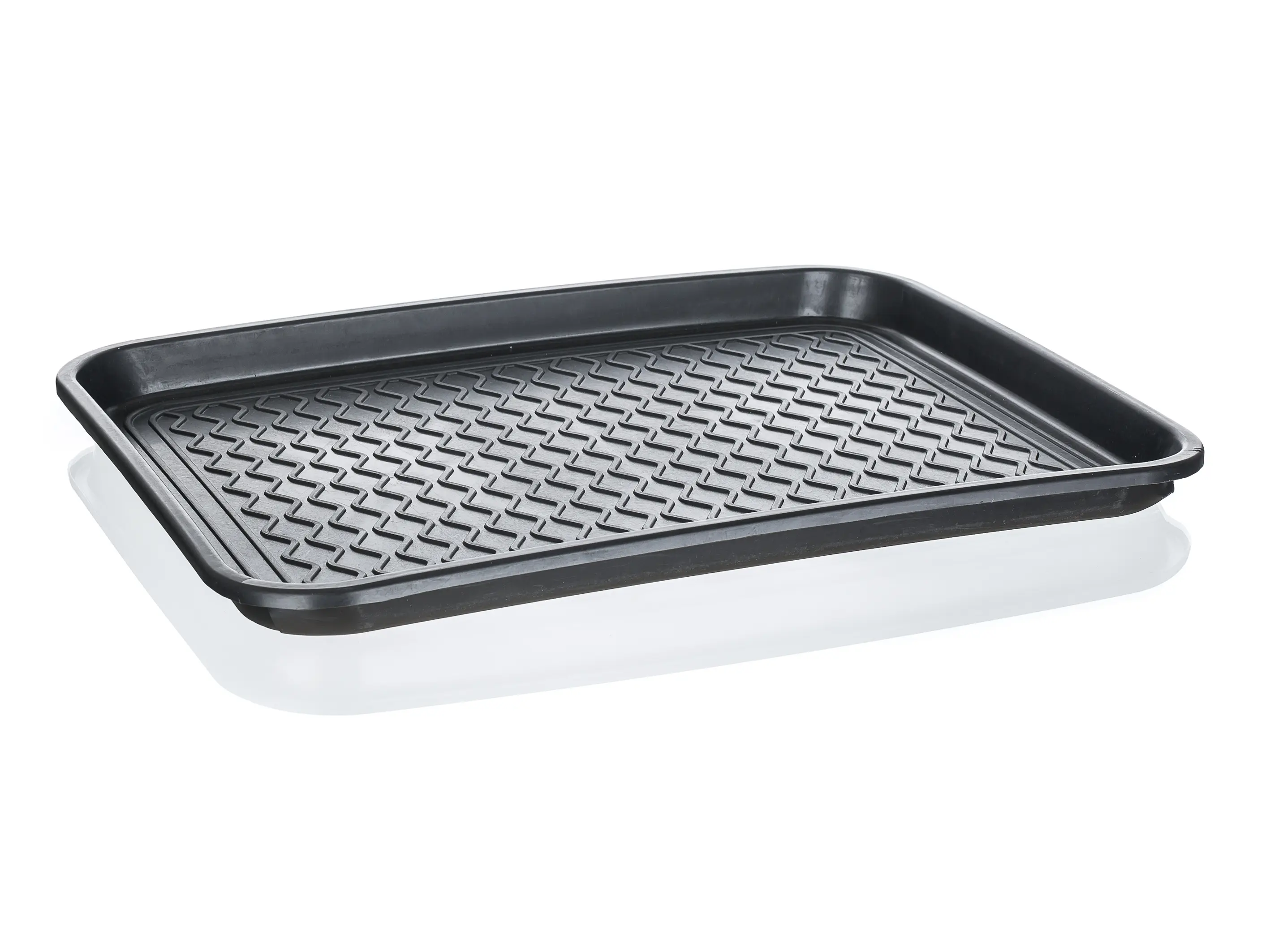 Odkapávač na boty plastový 50 x 38 cm v černé barvě, vyrobený z recyklovatelného plastu, je vhodný pomocník v zimním období pro záchyt vody a nečistot z obuvi.