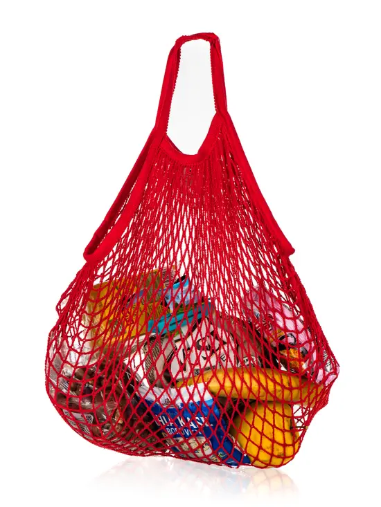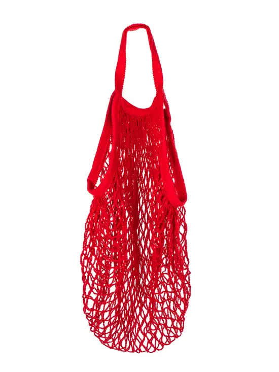 Síťovka Pretty Up s dlouhým uchem v červené barvě, je praktická a velmi skladná pro každodenní nákupy.