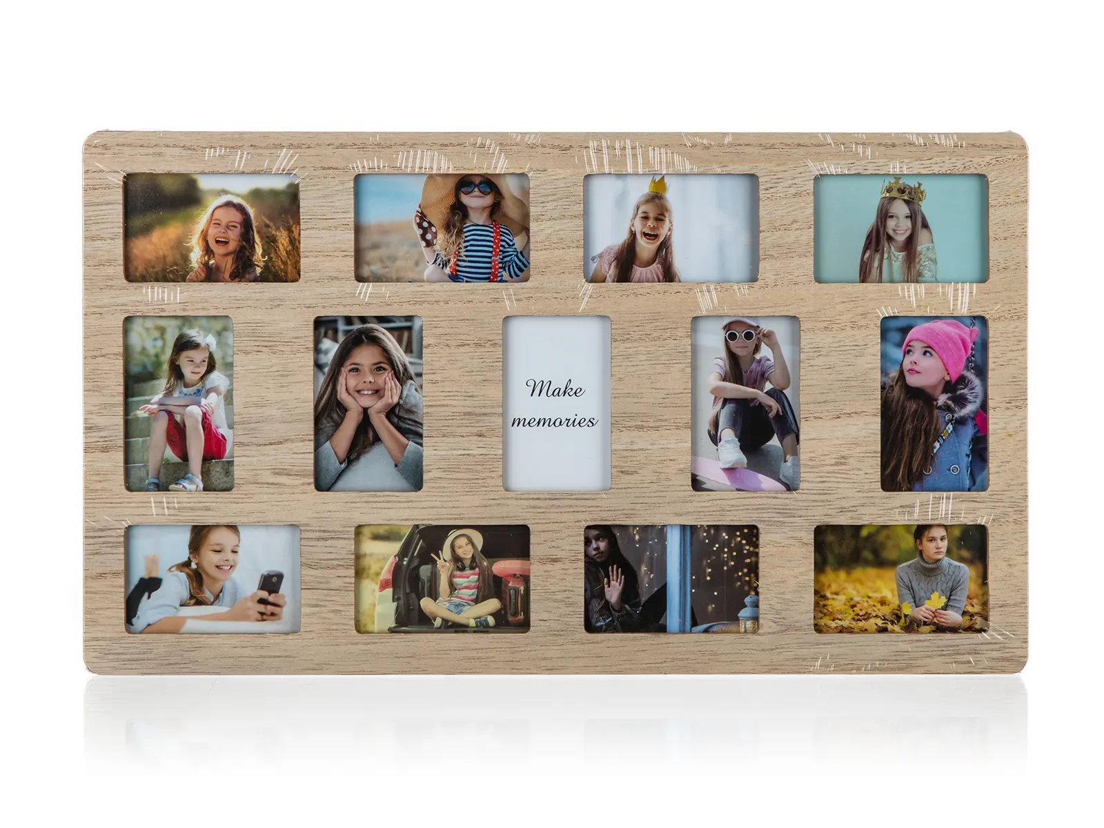 HOME DECOR Fotorámeček TEENAGER 13 x foto, slouží jako časosběrný rámeček od 7 do 18 let. Do rámečku si můžete vložit fotky z různého věku, které uchovají Vaše vzpomínky. Rozměry rámečku: 20 x 30 x 1 cm, rozměr všech okének: 6,4 x 4 cm. Fotky se musí do okének přizpůsobit dle potřeby.