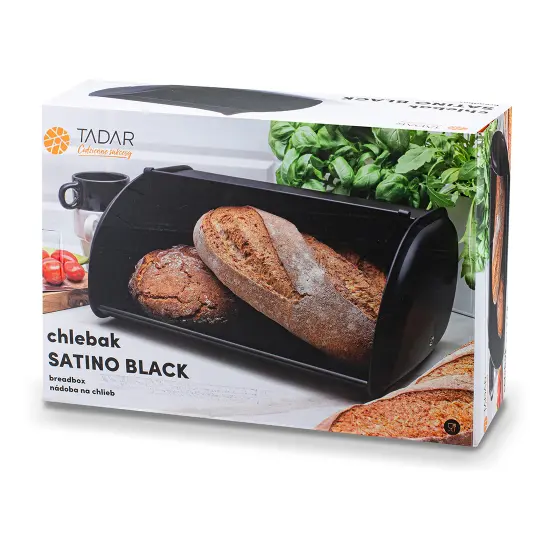 chlebovka 43x27,5x18cm kov.ČER- prodloužíte čerstvost vašeho oblíbeného chleba a hygienicky jej uskladníte - zajistíte tak dobré větrání obsahu chlebovky a zároveň chleba a pečivo ochráníte před kuchyňskými vůněmi - pevná konstrukce chlebníku z oceli - matný stylový černý povrch - výklopný mechanismus chlebníku pro snadný přístup k chlebuPraktická chlebovka je vynikající pro uložení všech druhů pečiva, zabraňuje jeho nežádoucímu vlhnutí.rozměry (Š x H x V): 43 x 27 x 18 cm materiál: kov