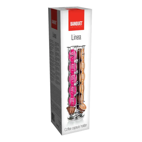 Stojak na kapsułki do kawy LINEA Dolce Gusto wykonany ze stali to poręczny pomocnik do przechowywania kapsułek. Stojak jest obrotowy i może pomieścić do 24 kapsułek kawy Gusto. Kapsułki można napełniać i wyjmować w dolnej części stojaka. Wymiary: 13,5 x 13,5 x 32,5 cm.
