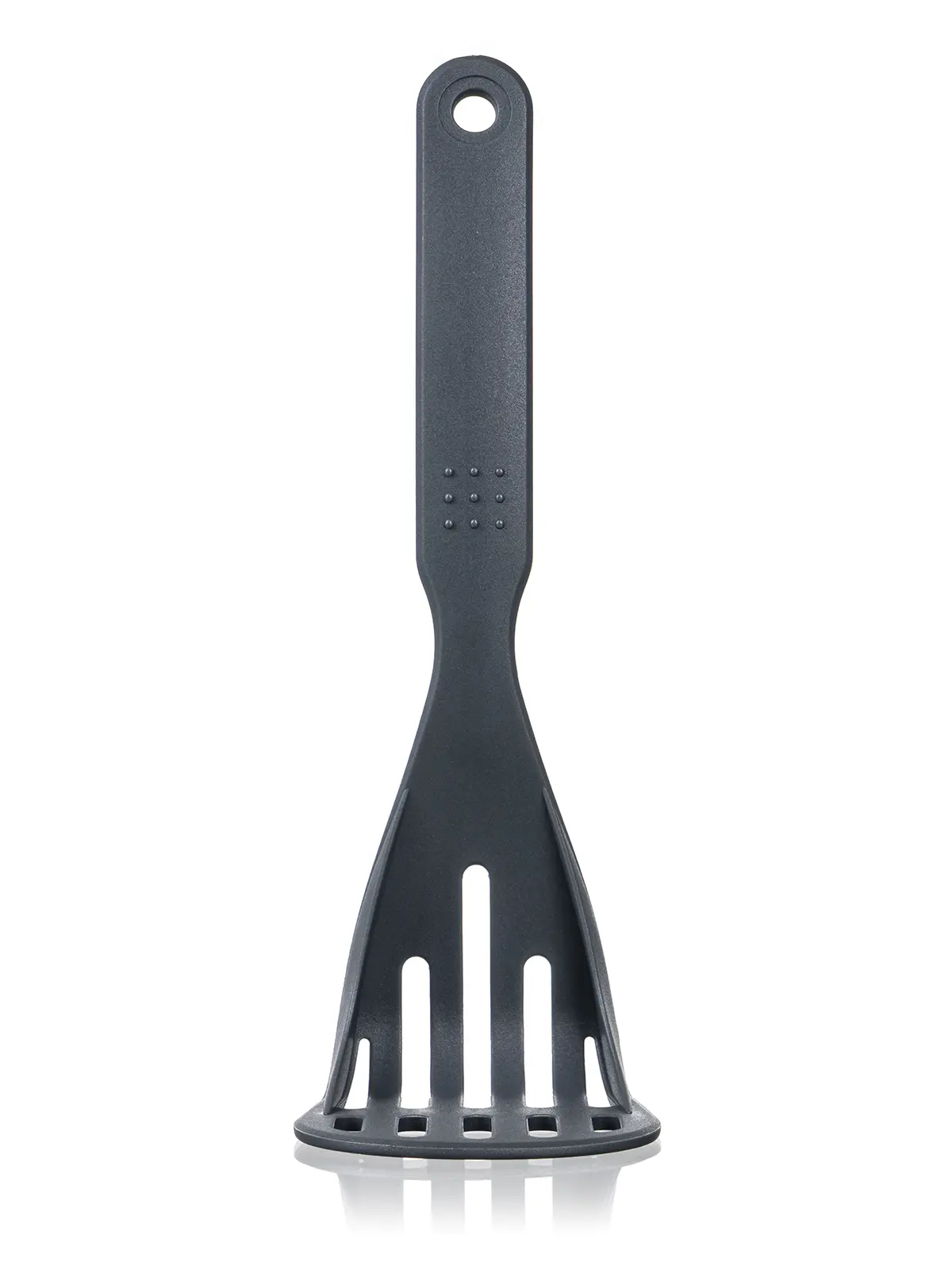 CULINARIA Szary tłuczek do ziemniaków 23 cm, materiał - nylon PA66, praktyczne oczko do zawieszenia. Naczynie jest łatwe w utrzymaniu, można myć w zmywarce. Maksymalna temperatura: do 210°C.