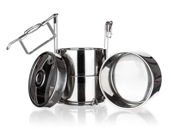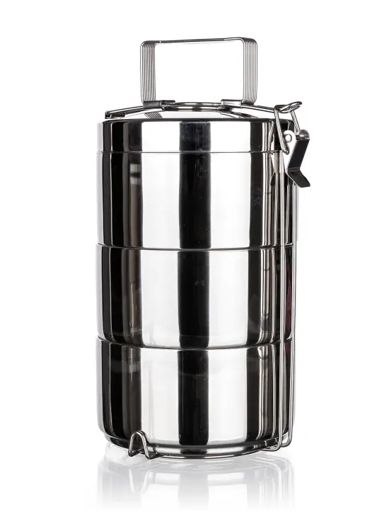 Jedlonosič 14 cm, 3dielny, nerez, dvojstenný, AKCENT.priemer: 14 cm výška misky: 7 cm objem: 3 x 0,74 l materiál: nerez3dielny nerezový dvojstenný jedlonosič AKCENT je určený na prenášanie potravín a hotových pokrmov. Sada obsahuje 3 nerezové dvojstenné misky s priemerom 14 cm a výškou 7 cm. Vďaka dvojstennému prevedeniu je praktický na uchovanie teplého pokrmu počas prenášania.