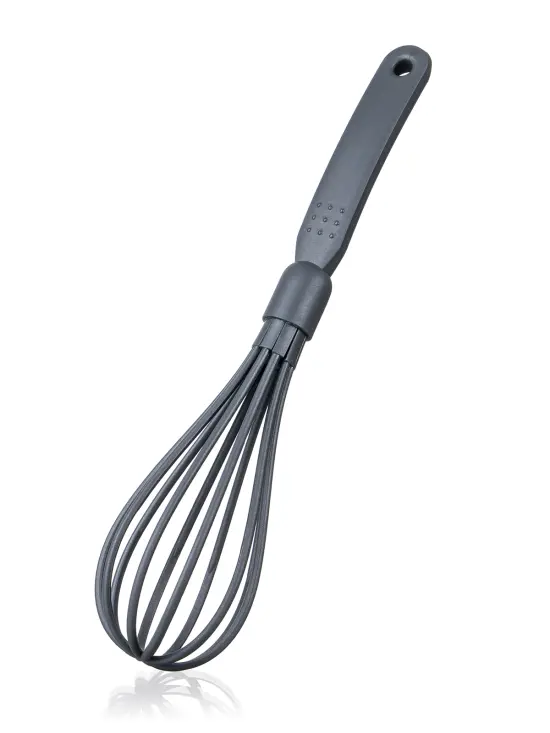 Šľahacia metla CULINARIA Grey 29 cm, materiál - nylon PA66, praktické očko pre možnosť zavesenia. Náčinie sa ľahko udržuje, možno umývať v umývačke riadu. Maximálna teplota: do 210 °C.