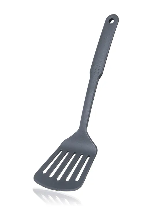 Obracačka s otvormi CULINARIA Grey 32 cm, materiál - nylon PA66, praktické očko pre možnosť zavesenia. Náčinie sa ľahko udržuje, možno umývať v umývačke riadu. Maximálna teplota: do 210 °C.